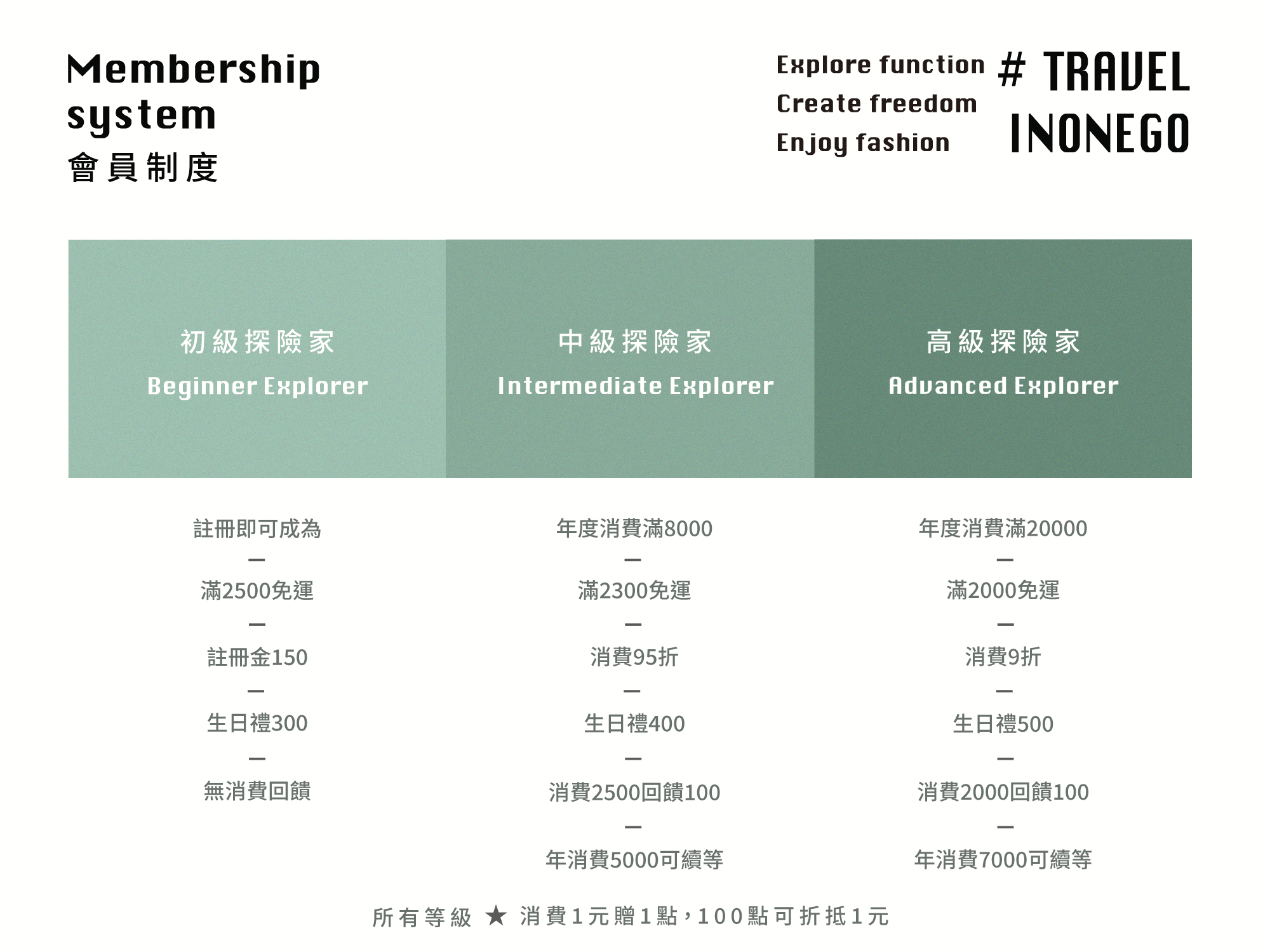 • 官網註冊即可成為品牌會員【初級探險家】,註冊禮贈送之$150購物金無使用期限限制。