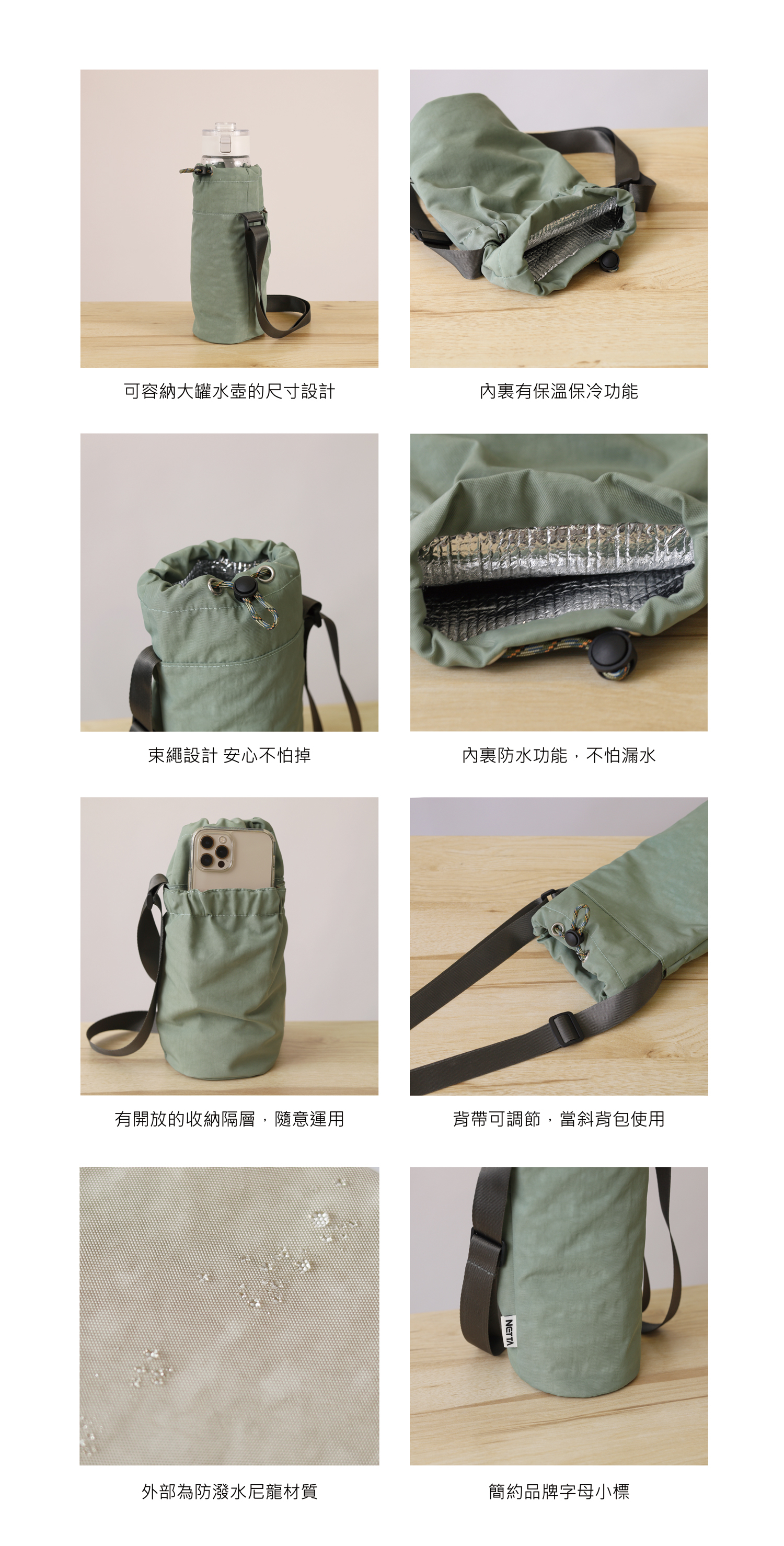 - 內裏防水之外,具備保溫保冷功能 !