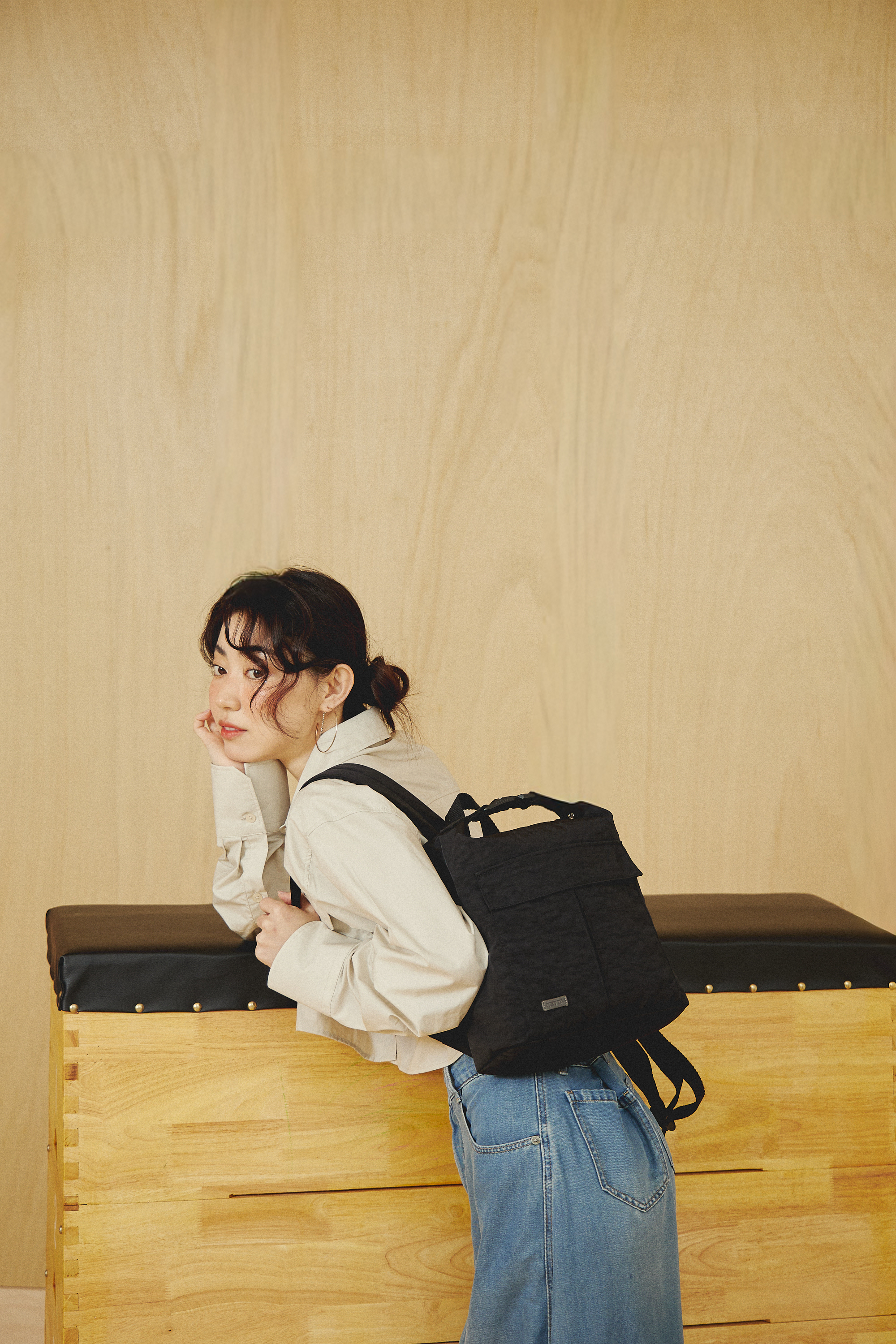 拉鍊與摺角結合插釦的獨特開口設計,讓包款更具安全性,同時側邊設計的便捷口袋方便拿取內層物品,為忙碌的都市人打造一款兼顧實用與美感的迷你後背包。